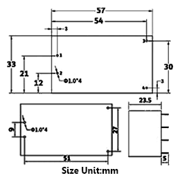 ابعاد (طول x عرض x ارتفاع) 57mm x 33mm x 23.5mm