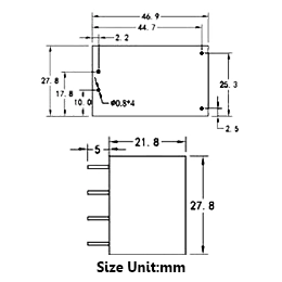 - ابعاد (طول x عرض x ارتفاع) 46.9mm x 27.8mm x 21.8mm