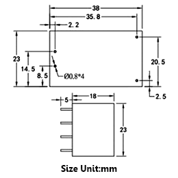 • ابعاد (طول x عرض x ارتفاع) 38mm x 23mm x 18mm